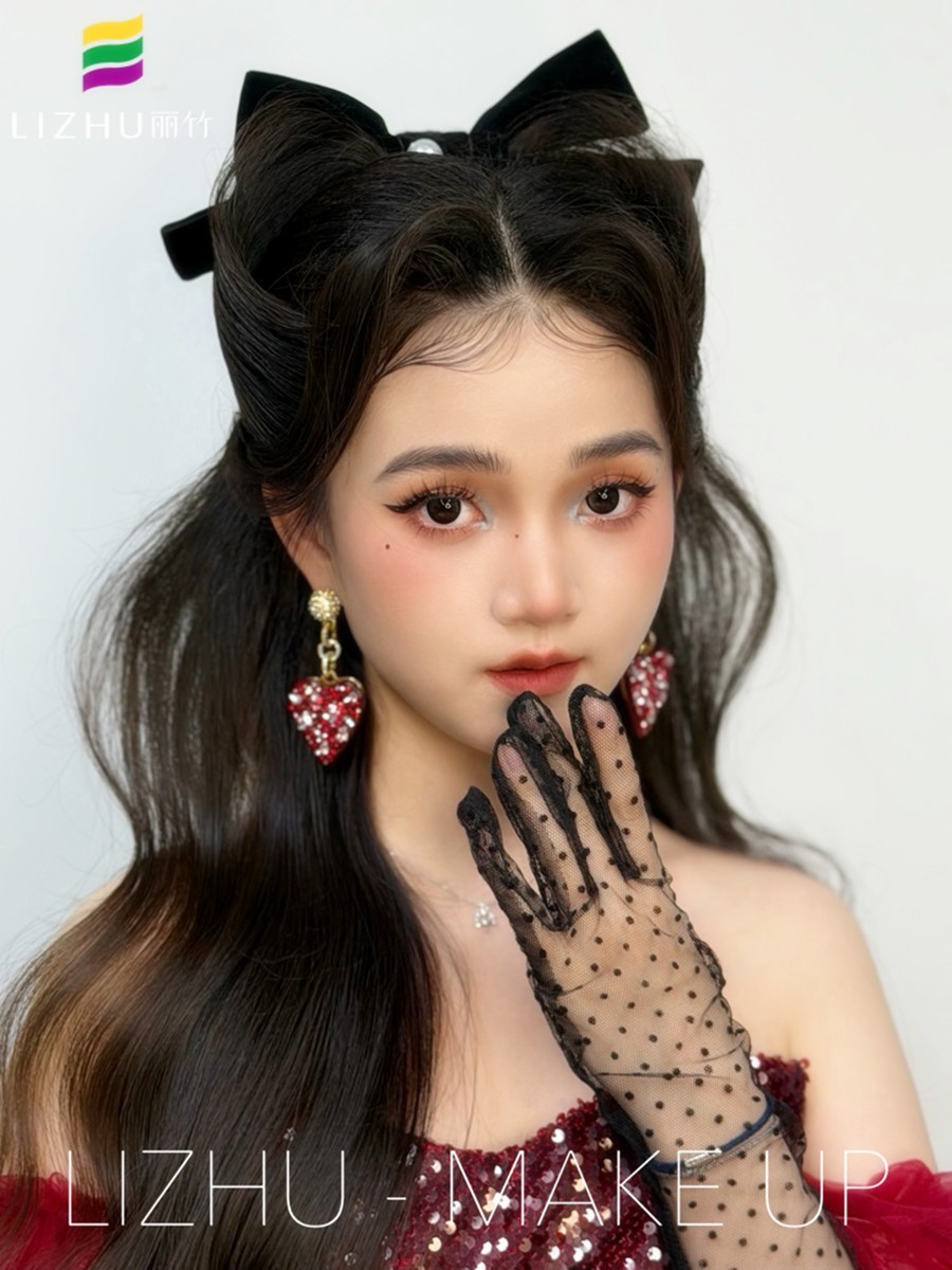 廣西化妝設計(、廣西化妝形象設計學校(麗竹化妝學校)作品---復古貓耳半披造型。如果你也想在廣西學化妝造型,想知道廣西化妝哪里好?麗竹化妝學校全程手把手教學+真人實操+耐心指導,即使是小白也能掌握一門既能賺米又變美的手藝!