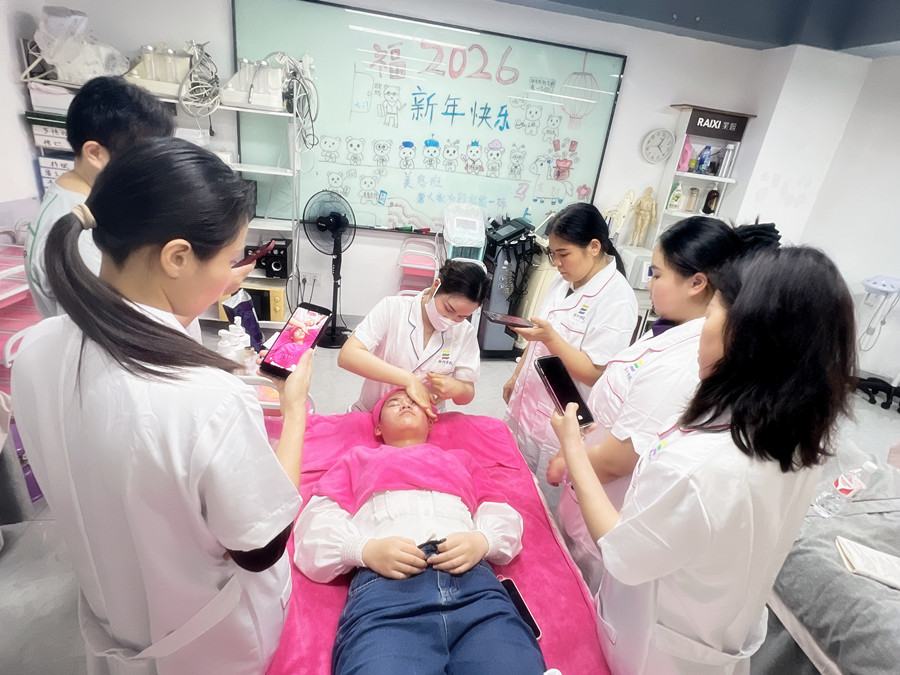 廣西美容護(hù)膚、廣西護(hù)膚教學(xué):廣西美容護(hù)膚專業(yè)學(xué)校(麗竹嗎,美容護(hù)膚專業(yè)學(xué)校)面部按摩培訓(xùn)課堂,不同于盲目跟風(fēng)的網(wǎng)紅按摩手法,廣西美容護(hù)膚基礎(chǔ)班的老師從基礎(chǔ)的潔面后放松手法、面部部位認(rèn)知,到促進(jìn)吸收的打圈按摩,提拉手法,緊致輪廓的進(jìn)階技巧,每一個動作,每一寸力道都親自示范、放慢動作,逐一步驟拆解,讓你清晰看清手法細(xì)節(jié)。