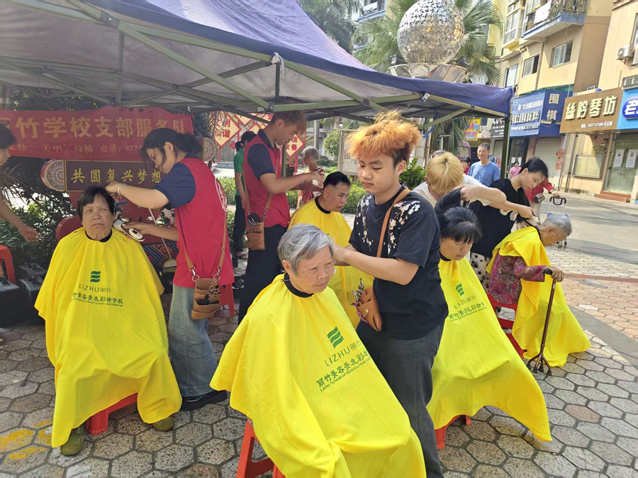 這一次,她們不再是對(duì)著頭模反復(fù)練習(xí),而是真正站在顧客面前,用課堂所學(xué),用手上的剪刀為居民剪出一款款干凈利落的發(fā)信,完成了從“零基礎(chǔ)小白”到“實(shí)操實(shí)踐者”的蛻變。